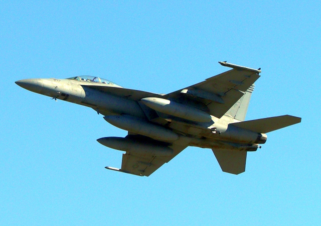 米海軍艦載機 F/A-18F スーパーホーネット 戦闘攻撃機(岩国基地)、NF、107番機が離陸 |