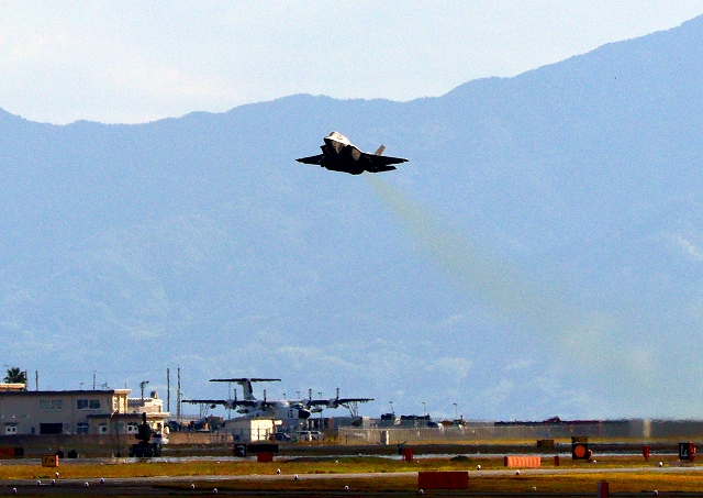 米海兵隊 F-35B ライトニングⅡ ステルス戦闘機(岩国基地)、VK、02番機が離陸 |