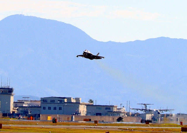 米海兵隊 F-35B ライトニングⅡ ステルス戦闘機(岩国基地)、VK、01番機が離陸 |