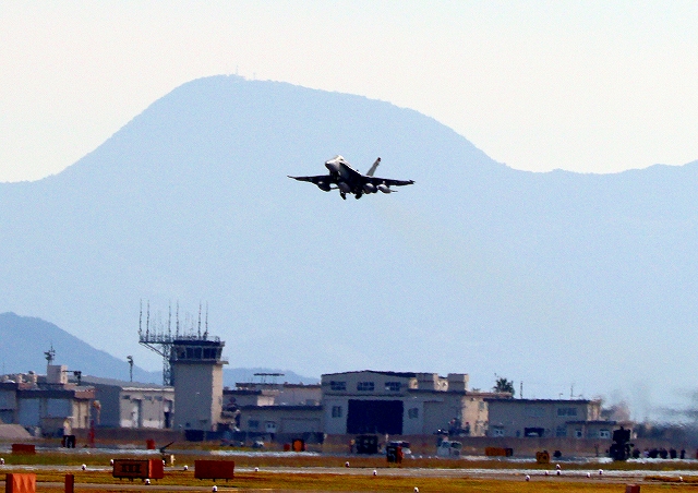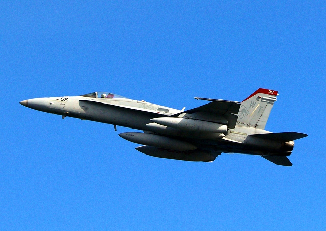 米海兵隊 F/A-18C ホーネット 戦闘攻撃機(岩国基地)、WT、06番機が離陸