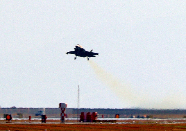 米海兵隊 F-35B ライトニングⅡ ステルス戦闘機(岩国基地)、VK、01番機が離陸