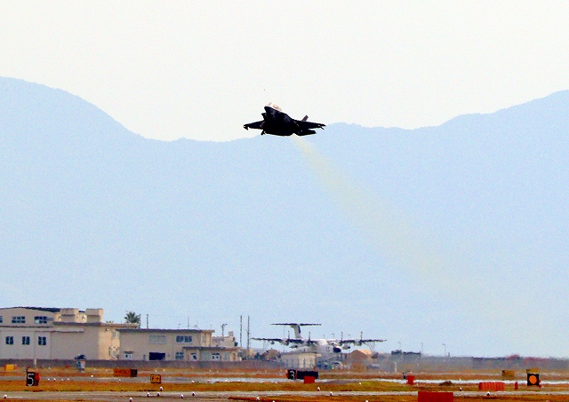 米海兵隊 F-35B ライトニングⅡ ステルス戦闘機(岩国基地)、VK、01番機が離陸 |