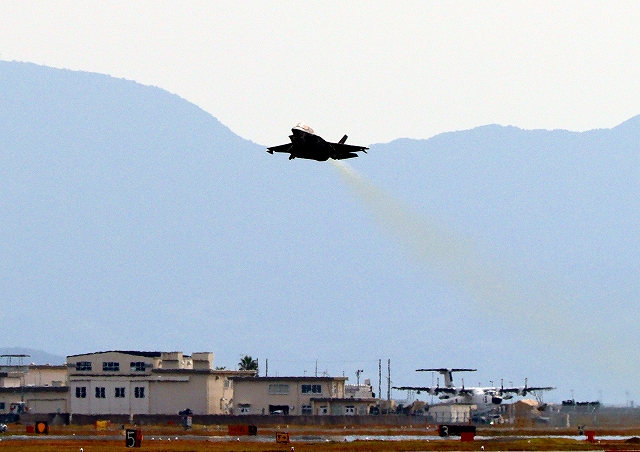 米海兵隊 F-35B ライトニングⅡ ステルス戦闘機(岩国基地)、VK、03番機が離陸 |
