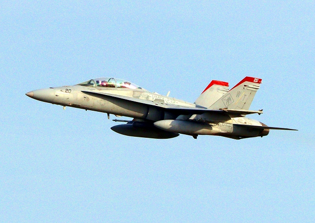 米海兵隊 F/A-18D ホーネット 戦闘攻撃機(岩国基地)、WT、20番機が離陸 |
