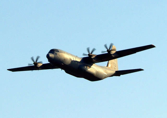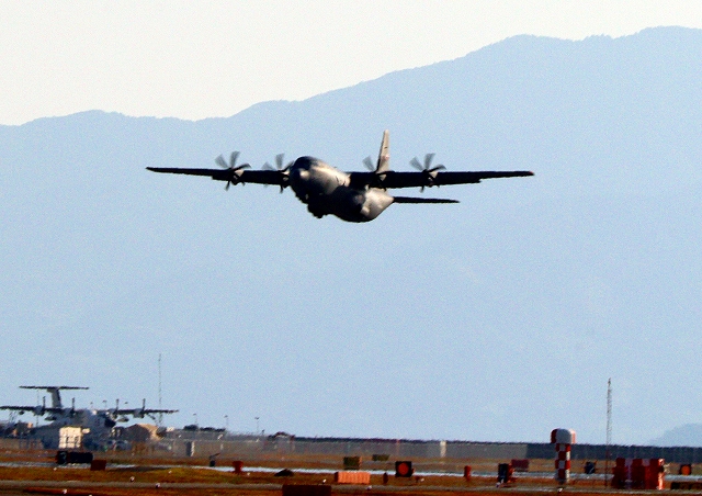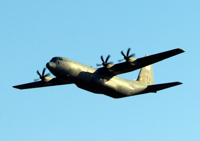 米空軍 C-130J 戦術輸送機 ハーキュリーズ(横田基地)、YJ、610番機が離陸 |