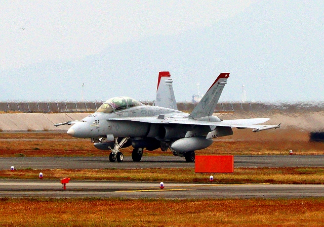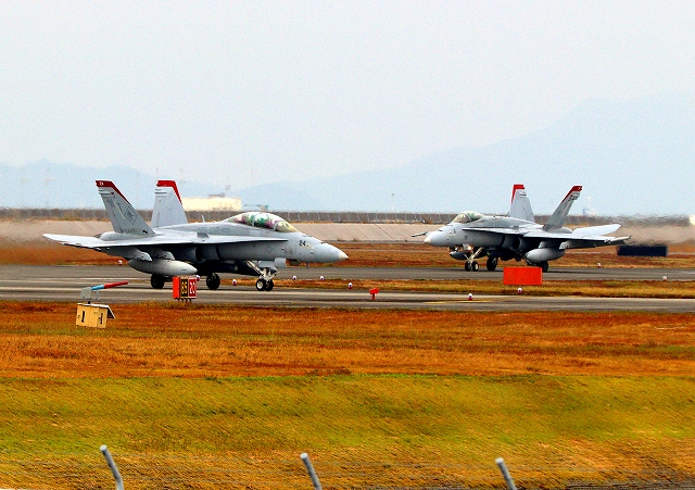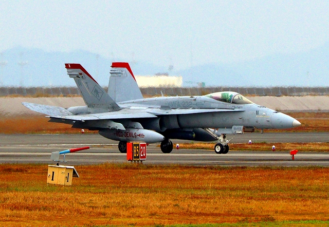 米海兵隊 F/A-18D ホーネット 戦闘攻撃機(岩国基地)、WT、24番機が帰還、着陸 |