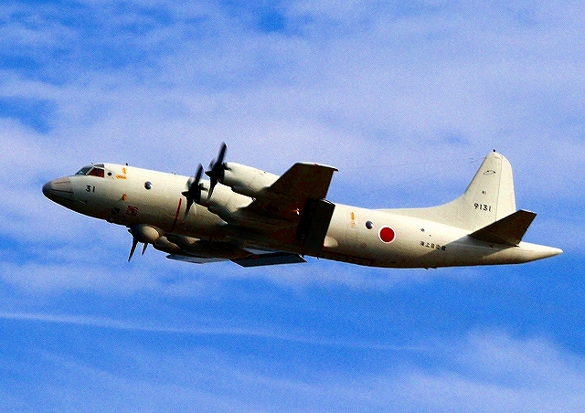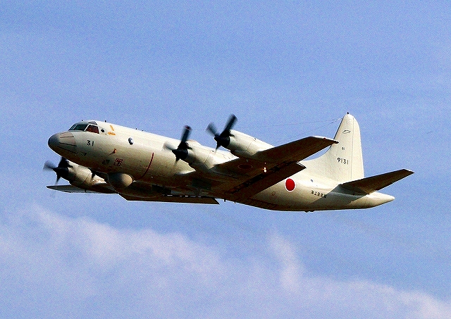 海上自衛隊 OP-3C 画像情報収集機(岩国基地)、9131番機が旋回 |