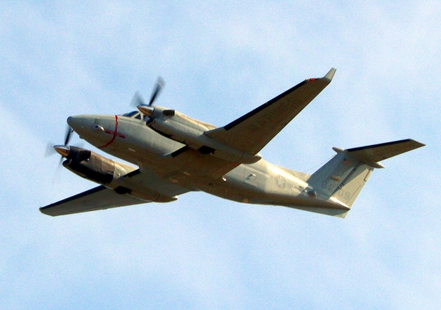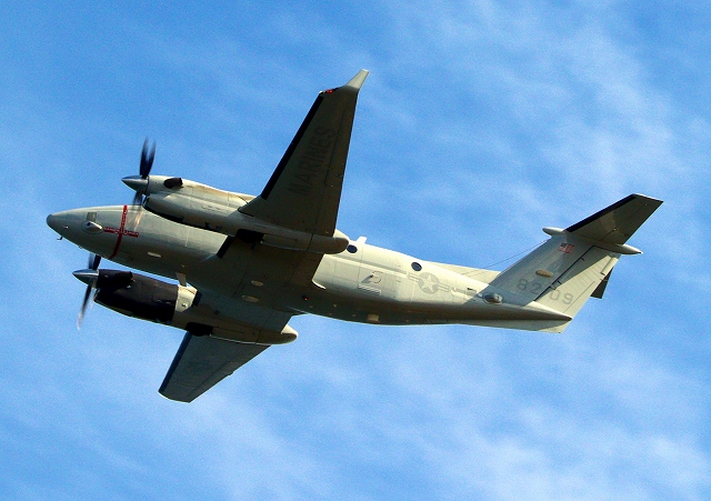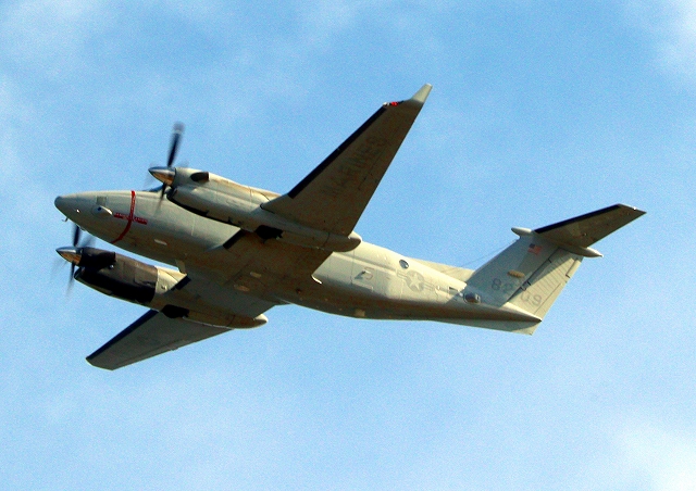 米海兵隊 UC-12W ヒューロン 軽輸送機(岩国基地)、8209番機が離陸 |