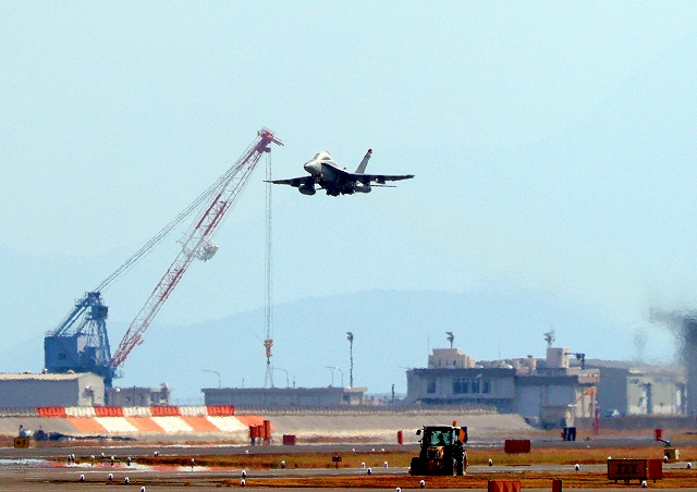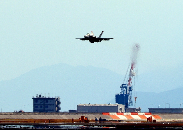 米海兵隊 F/A-18C ホーネット 戦闘攻撃機(岩国基地)、WT 05番機が離陸 |
