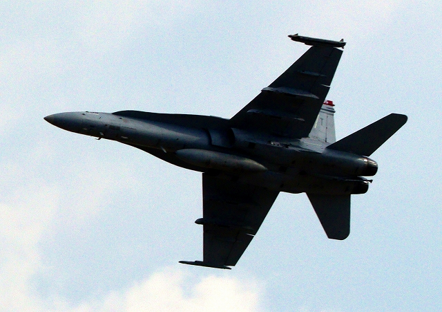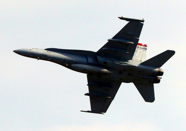 米海兵隊 F/A-18D ホーネット 戦闘攻撃機(岩国基地)、WT 24番機が離陸 |