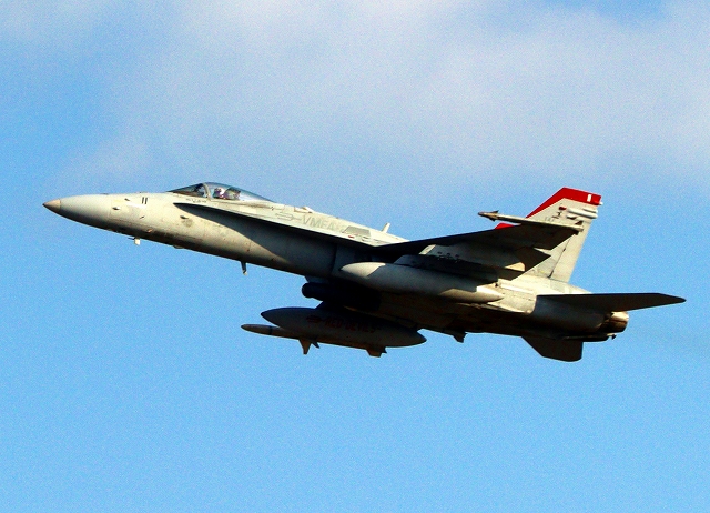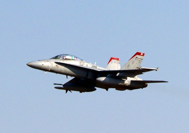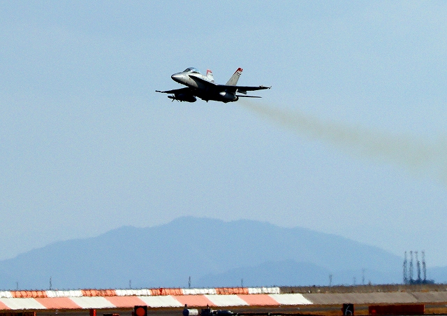 米海兵隊 F/A-18C ホーネット 戦闘攻撃機(岩国基地)、WT 11番機が離陸 |