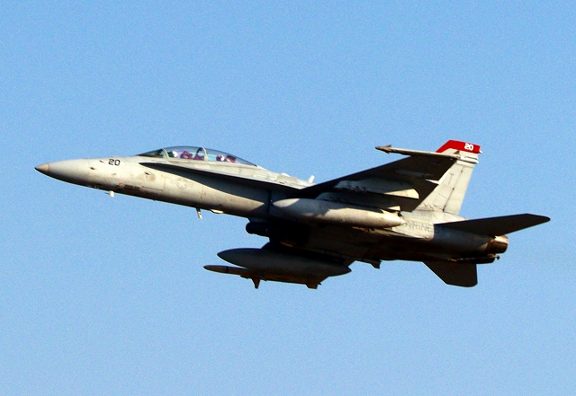 米海兵隊 F/A-18D ホーネット 戦闘攻撃機(岩国基地)、WT 20番機が離陸 |