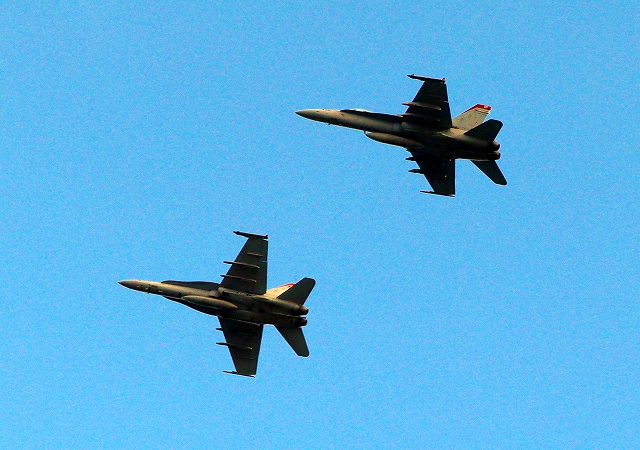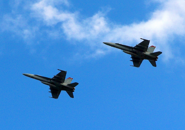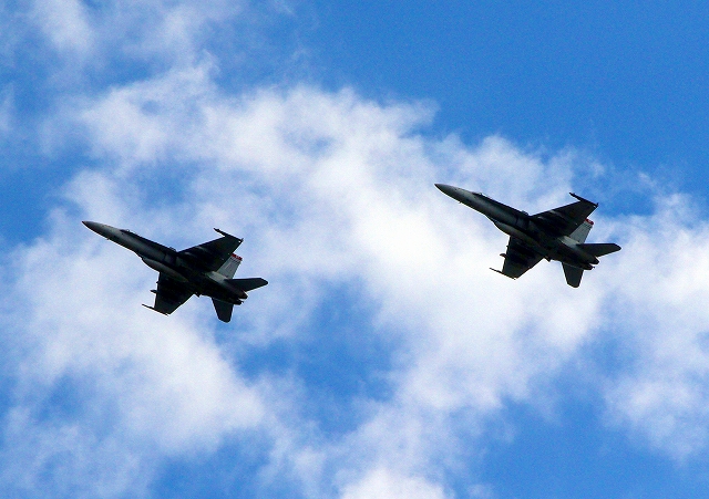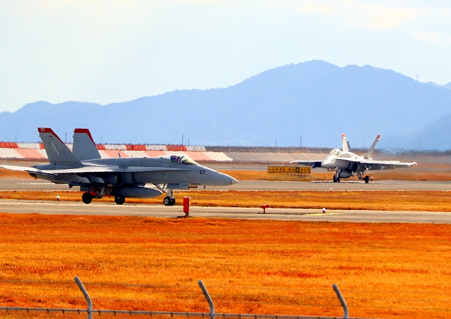 米海兵隊 F/A-18C ホーネット 戦闘攻撃機(岩国基地)、WT 07番機、05番機が2機編隊で帰還