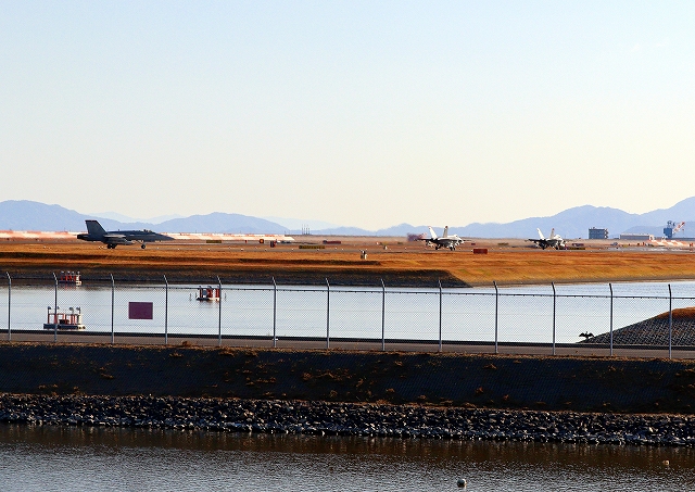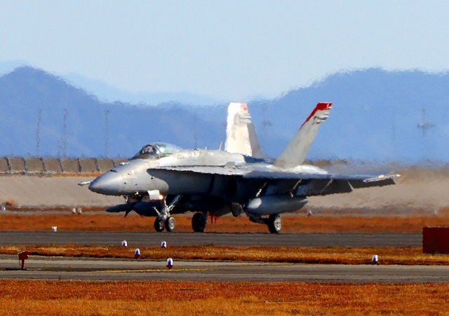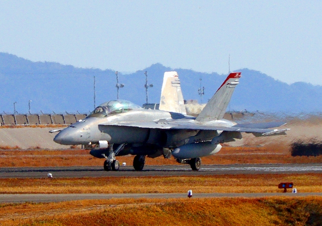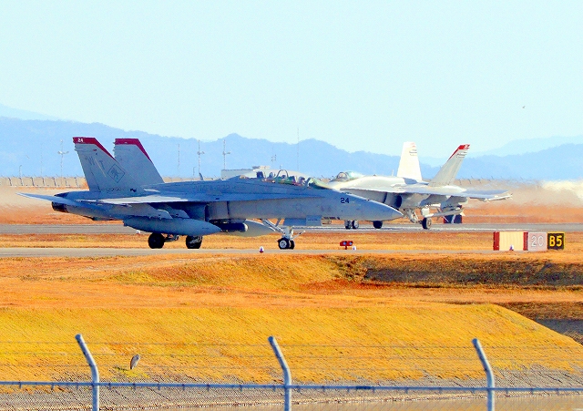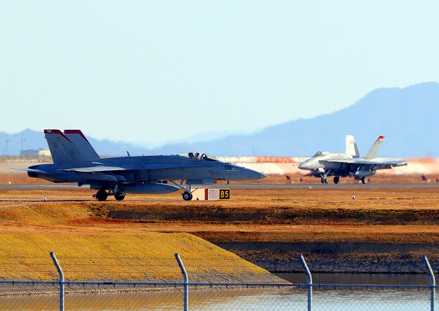 米海兵隊 F/A-18D ホーネット 戦闘攻撃機(岩国基地)、WT 24番機、C WT 06番機が着陸 |