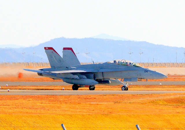 米海兵隊 F/A-18D ホーネット 戦闘攻撃機(岩国基地)、WT 24番機が着陸 |