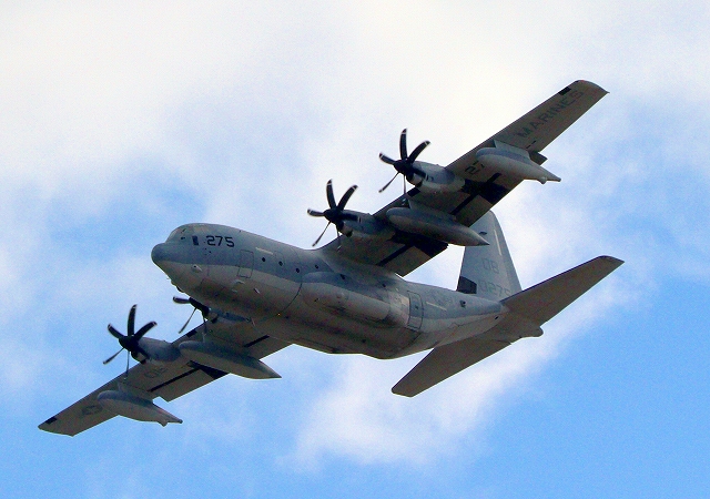 米海兵隊 KC-130J 空中給油機 スーパーハーキュリーズ(米本土海兵隊基地)、QB 0275番機 |