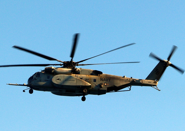 米海軍 MH-53E 機雷掃海ヘリ シードラゴンが離陸 |