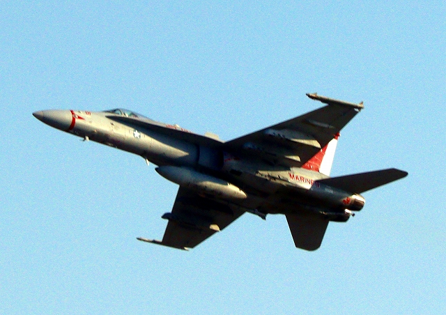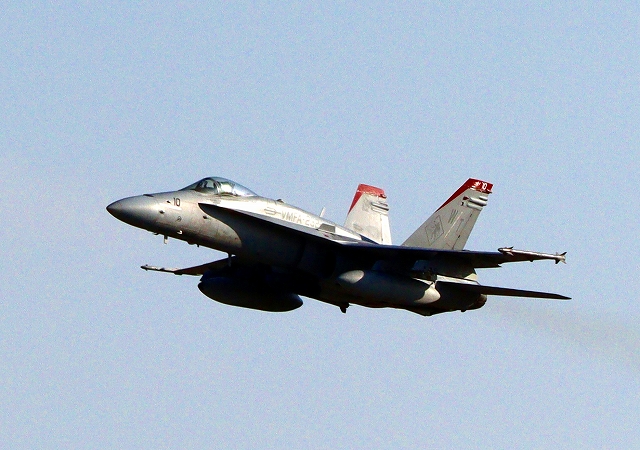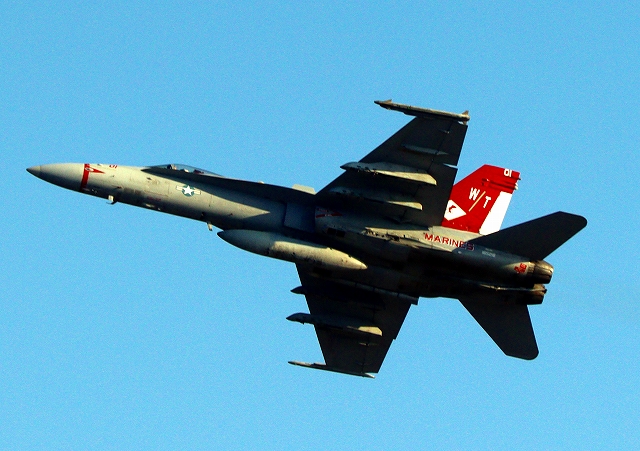 米海兵隊 F/A-18C ホーネット 戦闘攻撃機(岩国基地)、WT 10番機が離陸 |