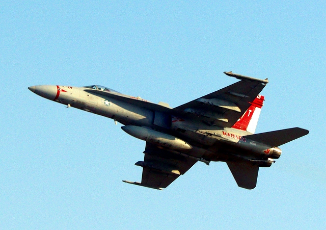 米海兵隊 F/A-18C ホーネット 戦闘攻撃機(岩国基地)、WT 01番機が離陸 |