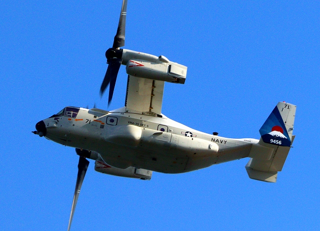 米海軍艦載機 CMV-22B オスプレイ(岩国基地)、71-9456番機が離陸 |
