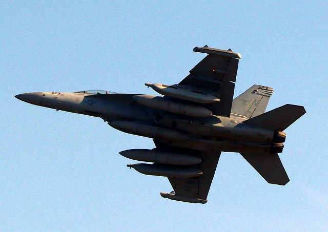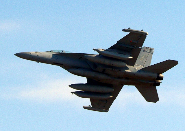 米海軍艦載機 EA-18G グラウラー 電子戦戦闘攻撃機(三沢基地)、NL、523番機が離陸 |