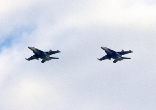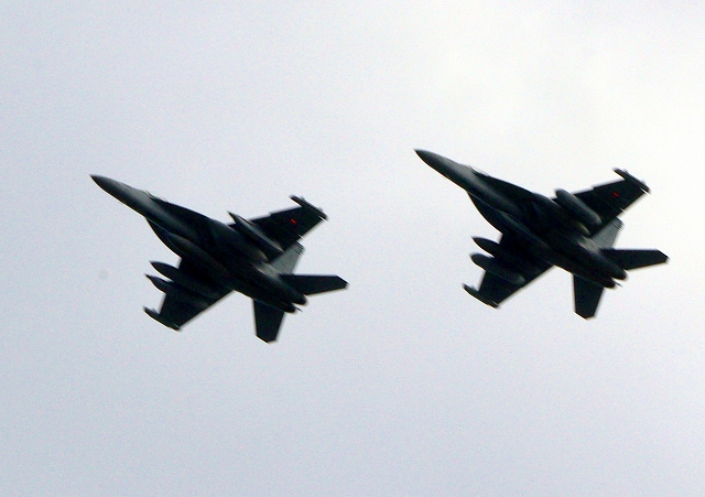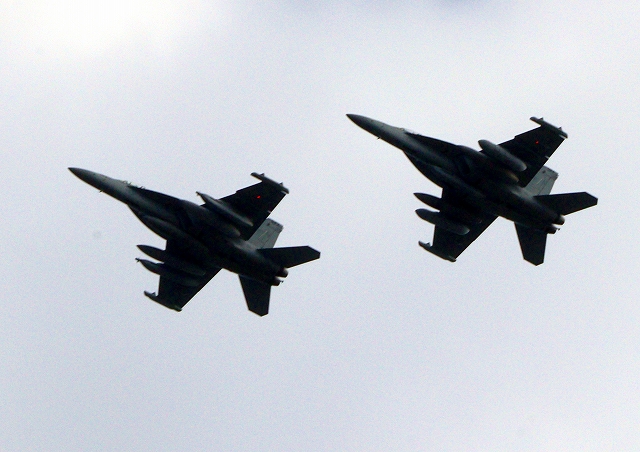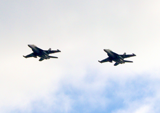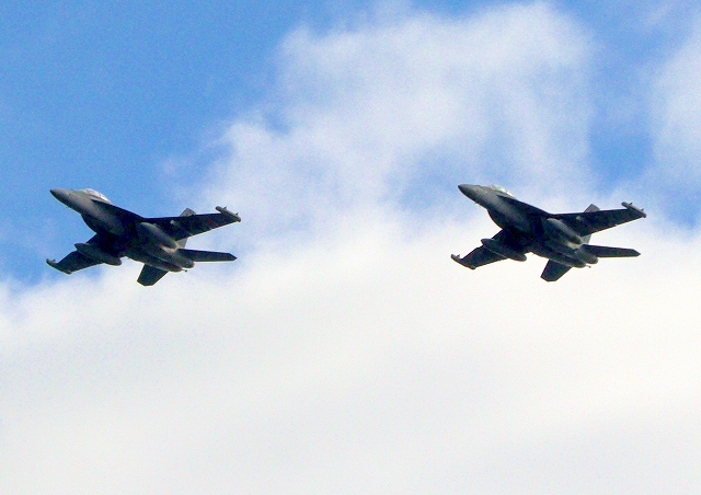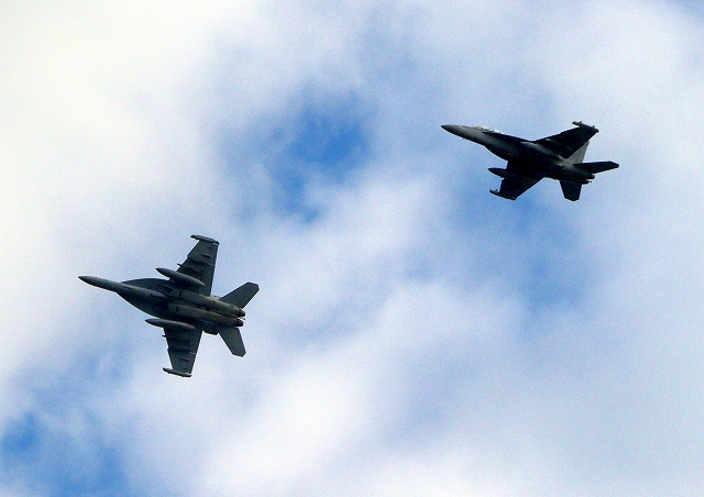 米海軍艦載機 EA-18G グラウラー 電子戦戦闘攻撃機(三沢基地)、NL、523番機、524番機が2機編隊で帰還 |