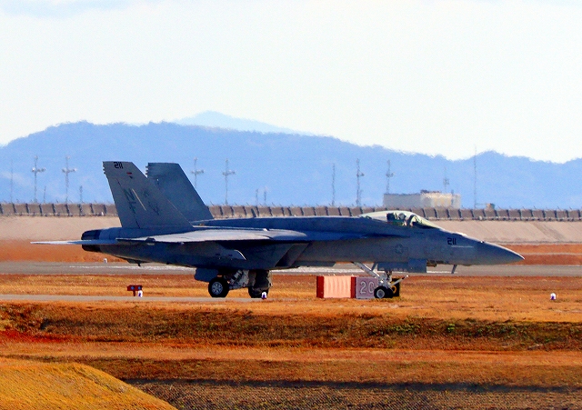 米海軍艦載機 F/A-18E スーパーホーネット 戦闘攻撃機(岩国基地)、NF、204番機、206番機が帰還 |