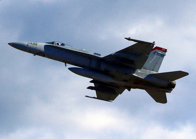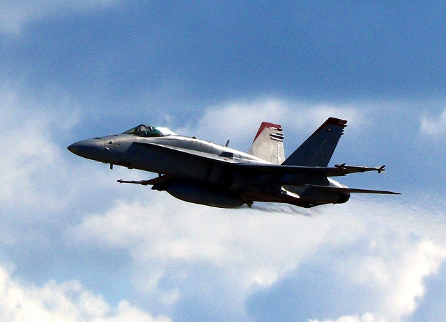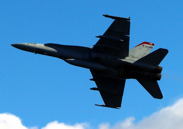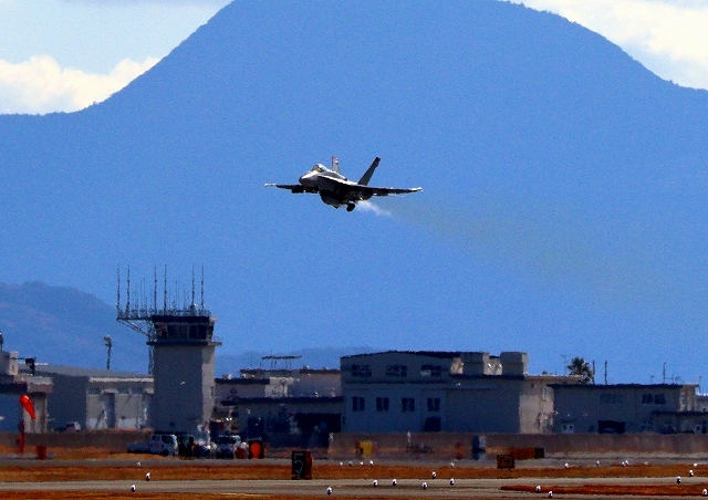 米海兵隊 F/A-18C ホーネット 戦闘攻撃機(岩国基地)、WT 03番機が離陸 |