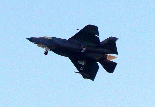 米海軍艦載機 F-35C ライトニングⅡ ステルス戦闘機(岩国基地)、NF、315番機が旋回 |