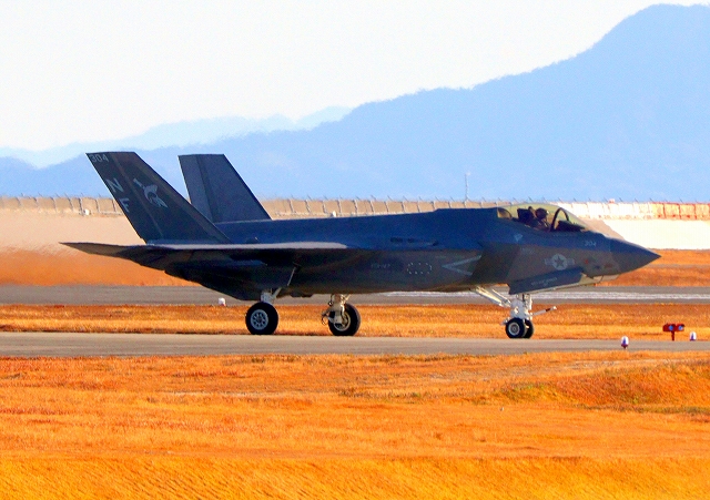 米海軍艦載機 F-35C ライトニングⅡ ステルス戦闘機(岩国基地)、NF、315番機が着陸 |