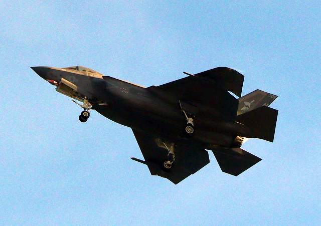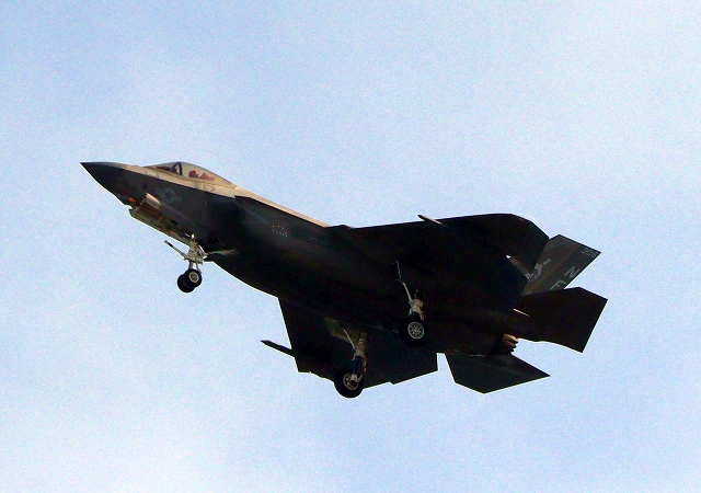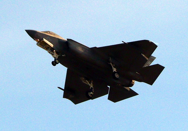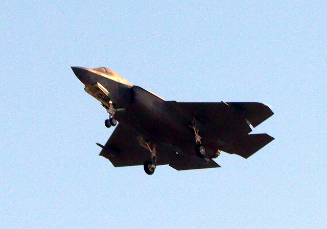 米海軍艦載機 F-35C ライトニングⅡ ステルス戦闘機(岩国基地)、NF、306番機が旋回 |