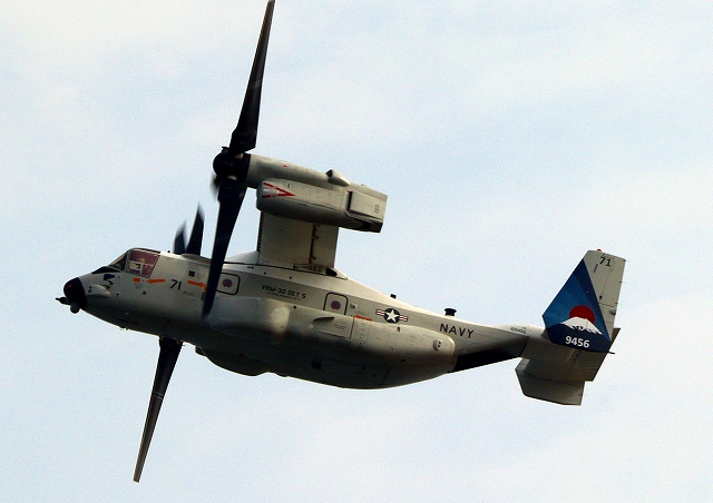 米海軍艦載機 CMV-22B オスプレイ(岩国基地)、71-9456番機が旋回 |