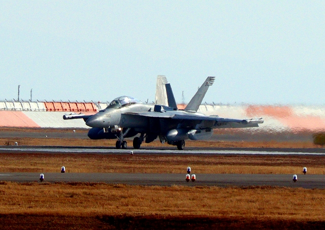 米海軍艦載機 EA-18G グラウラー 電子戦戦闘攻撃機(三沢基地)、NL、524番機が着陸 |
