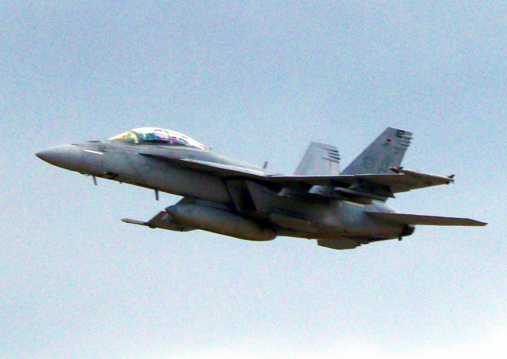 米海軍艦載機 F/A-18F スーパーホーネット 戦闘攻撃機(岩国基地)、NF、112番機が離陸