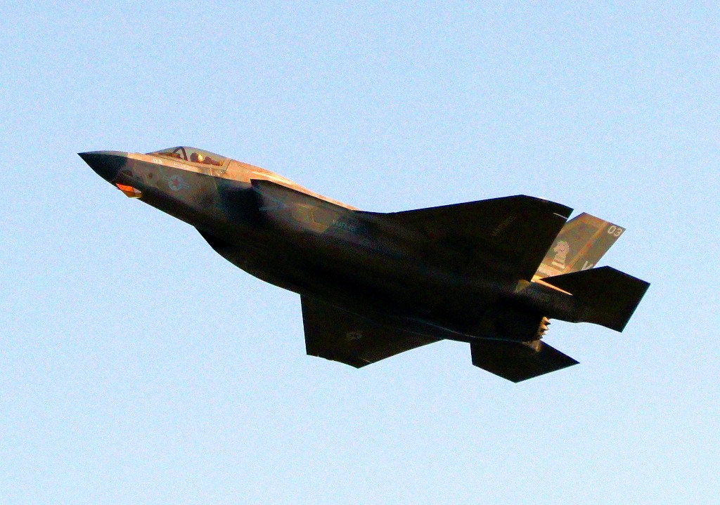 米海兵隊 F-35B ライトニングⅡ ステルス戦闘機(岩国基地)、VK、03番機が離陸