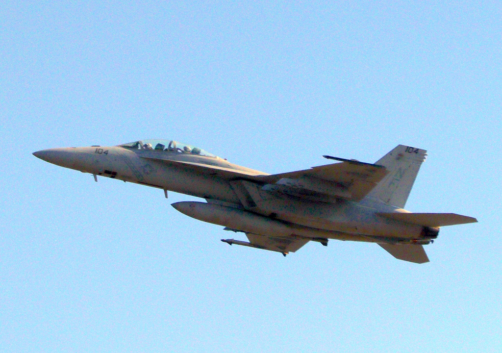 米海軍艦載機 F/A-18F スーパーホーネット 戦闘攻撃機(岩国基地)、NF、104番機が離陸