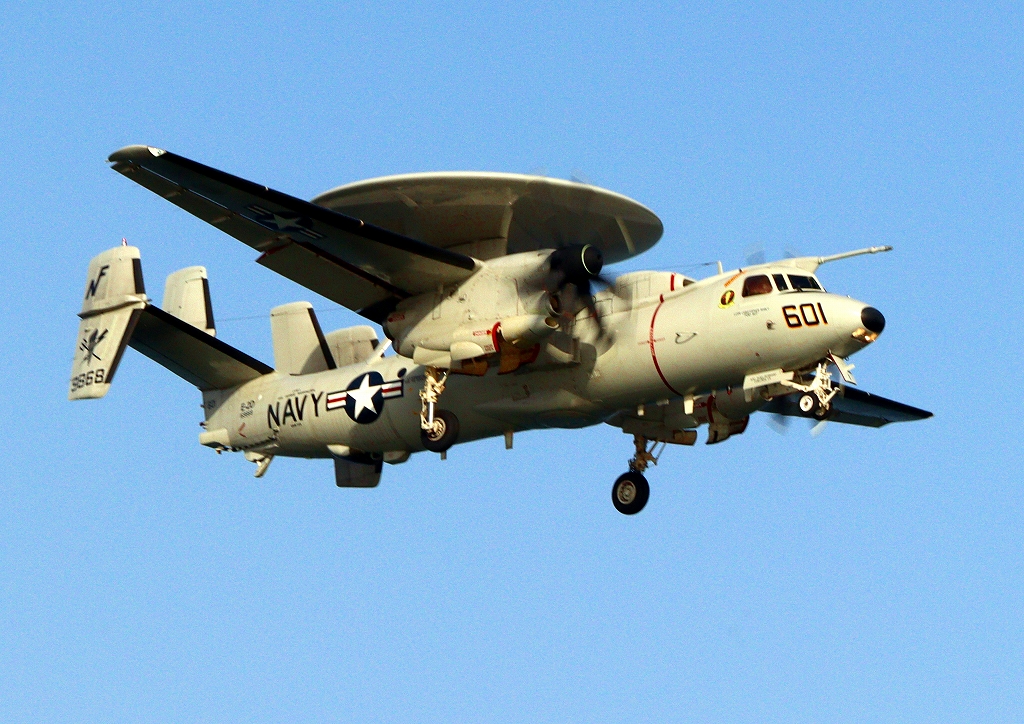 米海軍艦載機 E-2D アドヴァンスド・ホークアイ 早期警戒機(岩国基地)、601番機が旋回