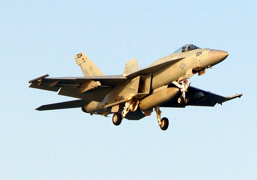 米海軍艦載機 F/A-18E スーパーホーネット 戦闘攻撃機(岩国基地)、NF、204番機が帰還、