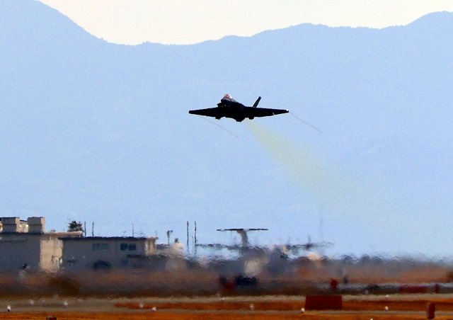 米海軍艦載機 F-35C ライトニングⅡ ステルス戦闘機(岩国基地)、NF、302番機が離陸 |