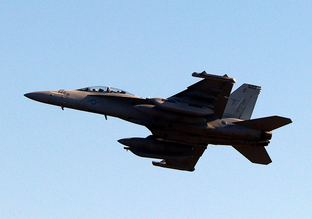 米海軍艦載機 EA-18G グラウラー 電子戦戦闘攻撃機(三沢基地)、NL、522番機が離陸 |