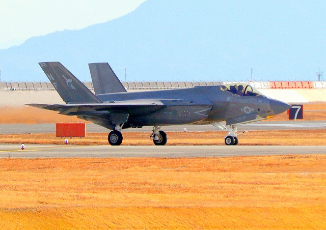 米海軍艦載機 F-35C ライトニングⅡ ステルス戦闘機(岩国基地)、NF、312番機が着陸 |