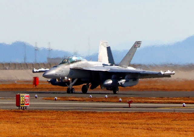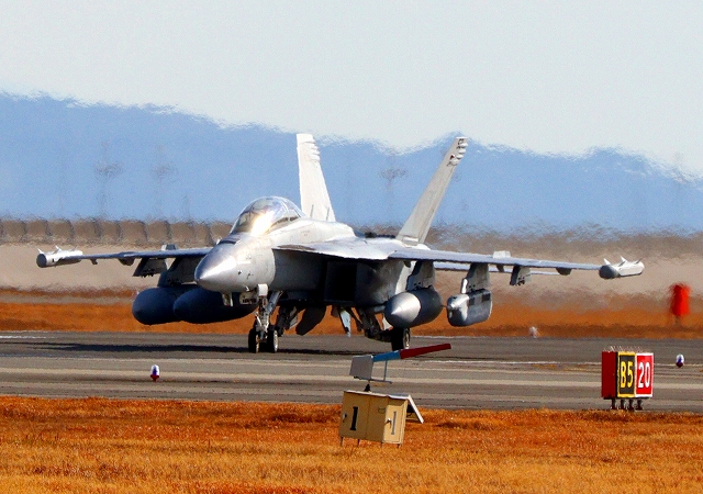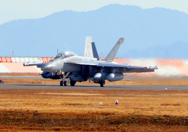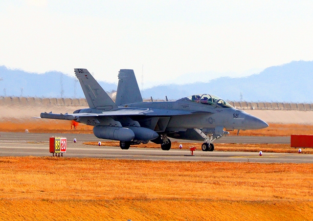 米海軍艦載機 EA-18G グラウラー 電子戦戦闘攻撃機(三沢基地)、NL、521番機が着陸 12時37分に離陸した機。1時間33分の飛行でした。 |