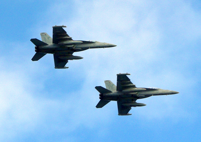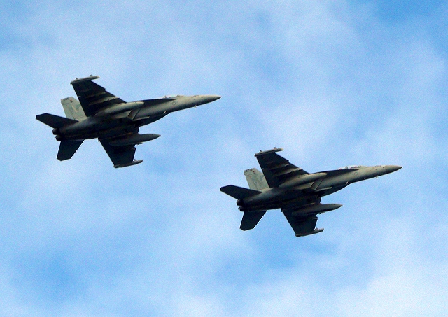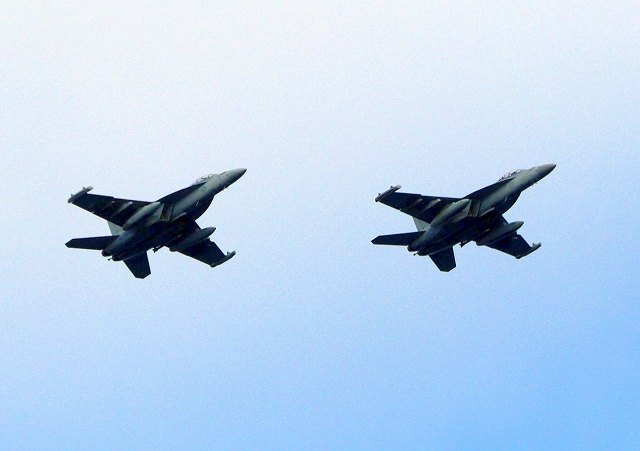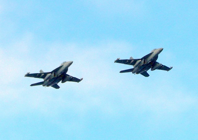 米海軍艦載機 EA-18G グラウラー 電子戦戦闘攻撃機(岩国基地)、NF、503番機、506番機が2機編隊で帰還 |