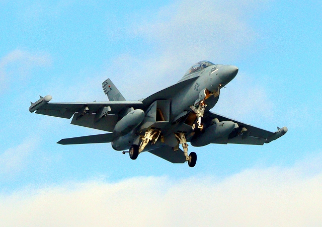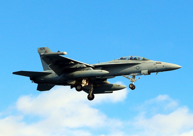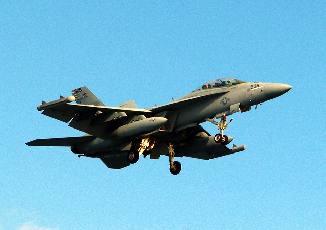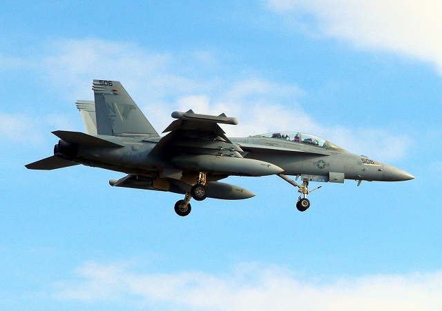 米海軍艦載機 EA-18G グラウラー 電子戦戦闘攻撃機(岩国基地)、NF、506番機が着陸 |