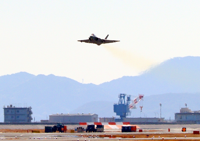 米海軍艦載機 F-35C ライトニングⅡ ステルス戦闘機(岩国基地)、NF、301番機が離陸 |