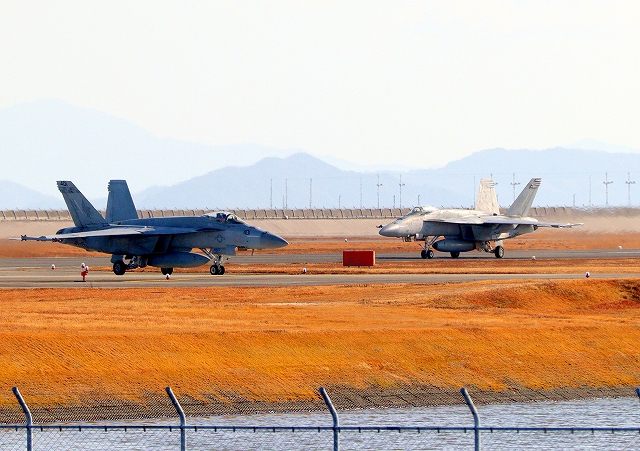 米海軍艦載機 F/A-18E スーパーホーネット 戦闘攻撃機(岩国基地)、NF、401番機、403番機 |