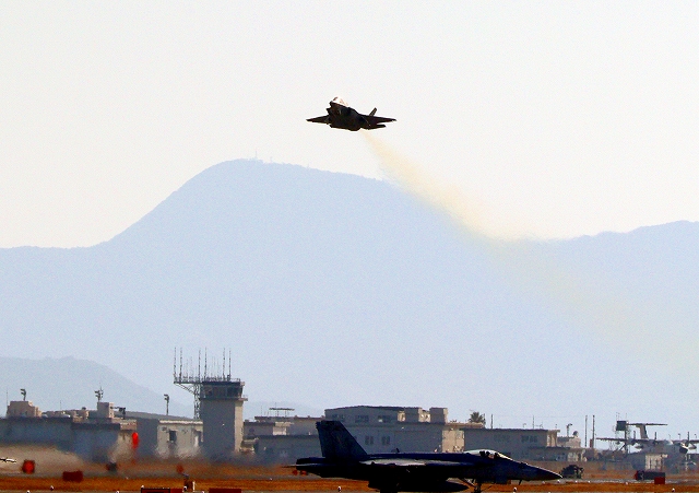米海兵隊 F-35B ライトニングⅡ ステルス戦闘機(岩国基地)、VK、03番機が離陸 |