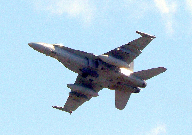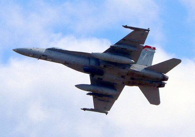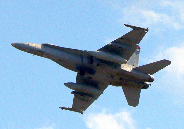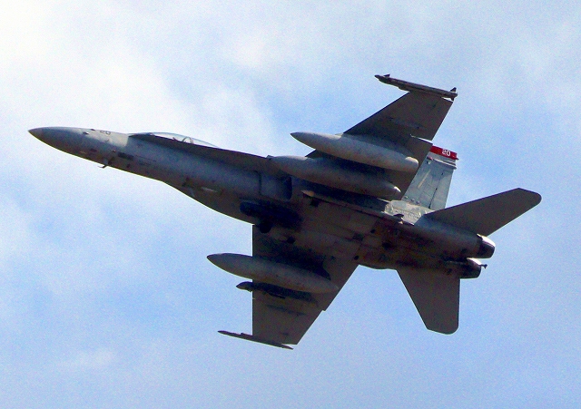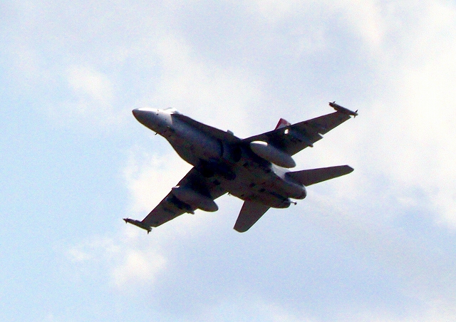 米海兵隊 F/A-18C ホーネット 戦闘攻撃機(岩国基地)、WT 10番機が離陸 |