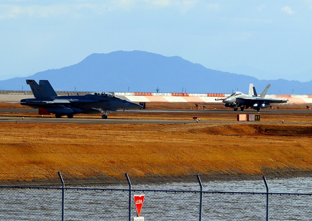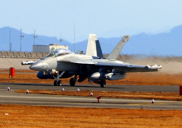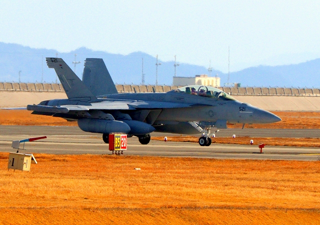 米海軍艦載機 EA-18G グラウラー 電子戦戦闘攻撃機(三沢基地)、NL、521番機が着陸 12時52分に離陸した機。1時間38分の飛行でした。 |