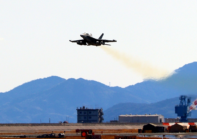 米海軍艦載機 EA-18G グラウラー 電子戦戦闘攻撃機(三沢基地)、NL、522番機が離陸 |